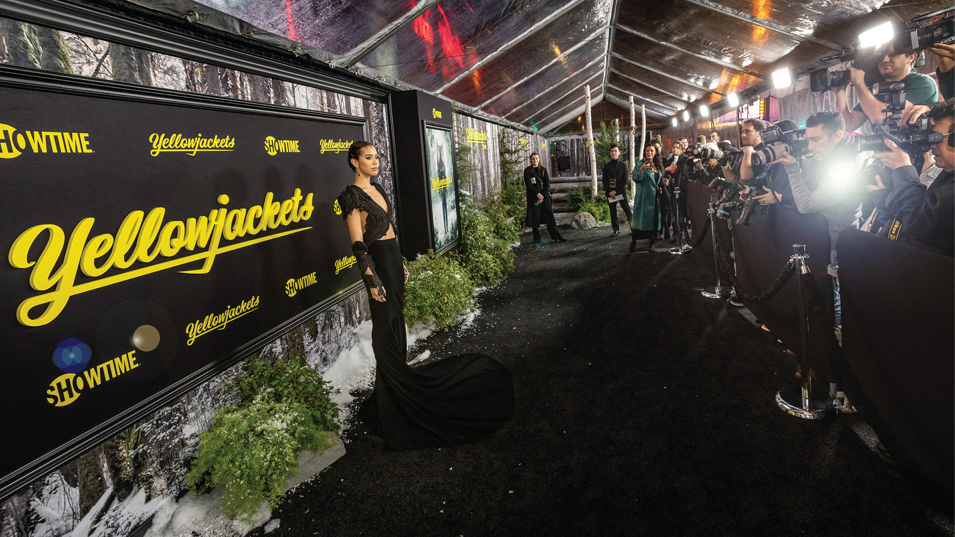 Hollywood's TCL Chinese Theatre is home to the 2nd Season Premiere of Yellowjackets on Showtime. Taking inspiration from the show's key art and teaser, I created a stark, frosted woodland with dark symbols hidden throughout the series. Incorporated into the design are the Arrivals Press and Fan Pens, Talent Press Walk, and a Cast Greenroom & Photo Set. Design responsibilities included: 3D renderings, pitch deck, production ready graphics with rental & production oversight.